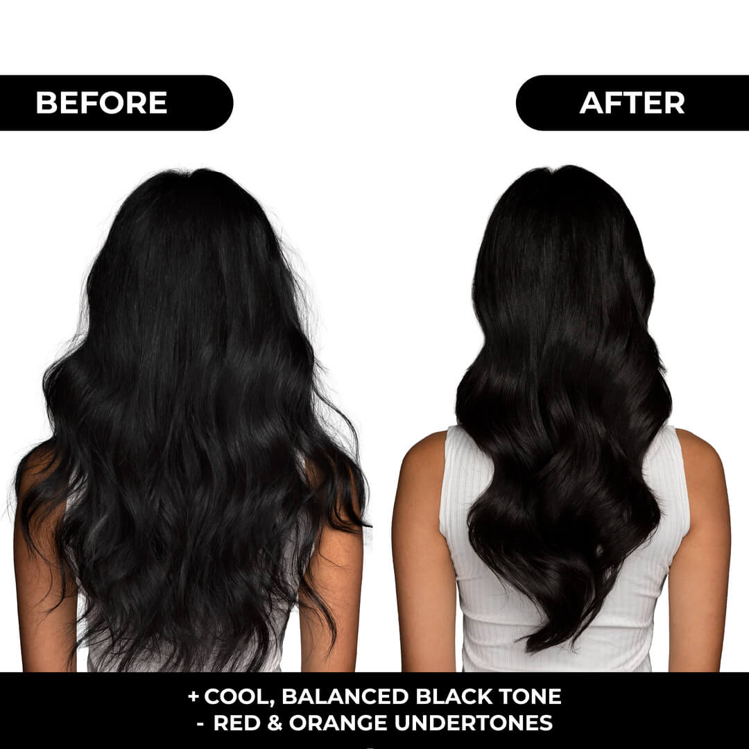 Powered by Naissant Ultra N high-purity pigments with a cool blue base and balancing modulators, this mask targets warm reflections that appear as hair oxidizes and fades. It is ideal for levels 1–3 (and level 4 when visible red appears), especially on colored hair that tends to turn reddish after repeated washes. By softening red and orange undertones, the color looks like a cleaner, cooler, more professional black.