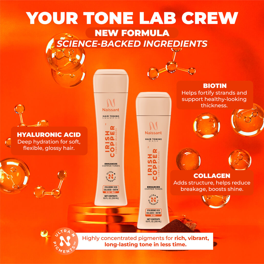 Turn up the warmth and shine of your copper hair with Naissant Irish Copper Hair Toning Mask, a color-depositing treatment designed to deliver a deep, luminous copper tone while treating hair with skincare-inspired care. This ammonia-free, peroxide-free, paraben-free, sulfate-free and DMDM hydantoin-free formula uses a pH-balanced base to help maintain a rich, salon-quality copper finish on red and copper-toned hair.