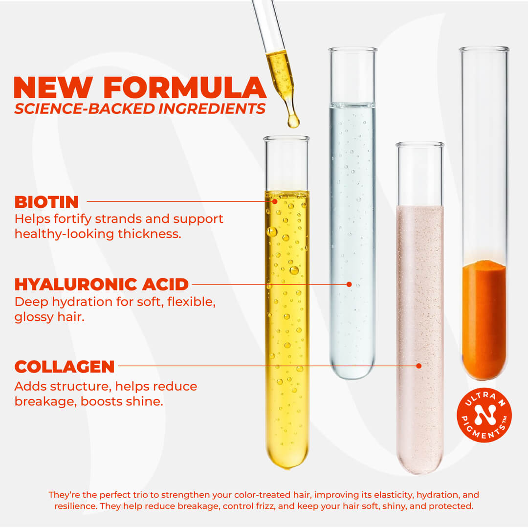 Powered by Naissant Ultra N high-purity copper-red pigments, this mask deposits an intense, warm copper that revives faded color, boosts dull copper tones and enhances already vibrant shades. Ideal for clients who want a bold, high-impact copper result and for refreshing color between salon appointments.