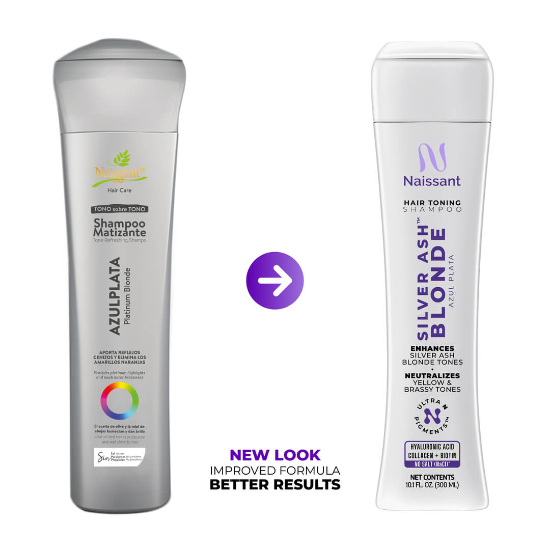 Bring your blonde back to a cool, ash finish with Naissant Silver Ash Blonde Hair Blue Toning Shampoo, a pH-balanced cleanser that removes buildup and excess oils while helping neutralize orange, copper and brassy tones. Designed for light blonde and bleached hair (levels 7–8, and up to 9 with an orange base), this shampoo prepares the hair fiber for more even pigment deposit and a refined silver ash result.