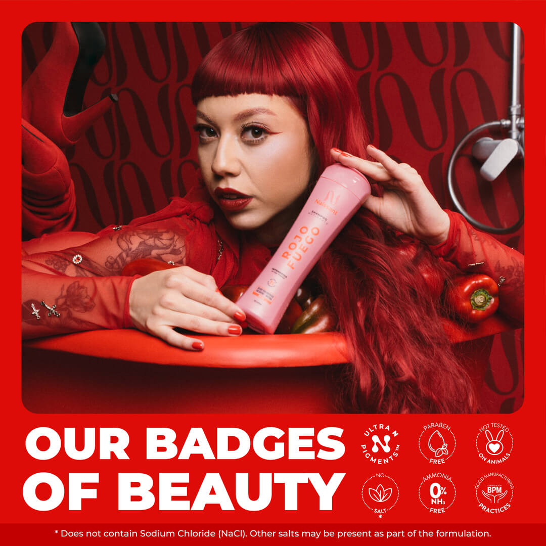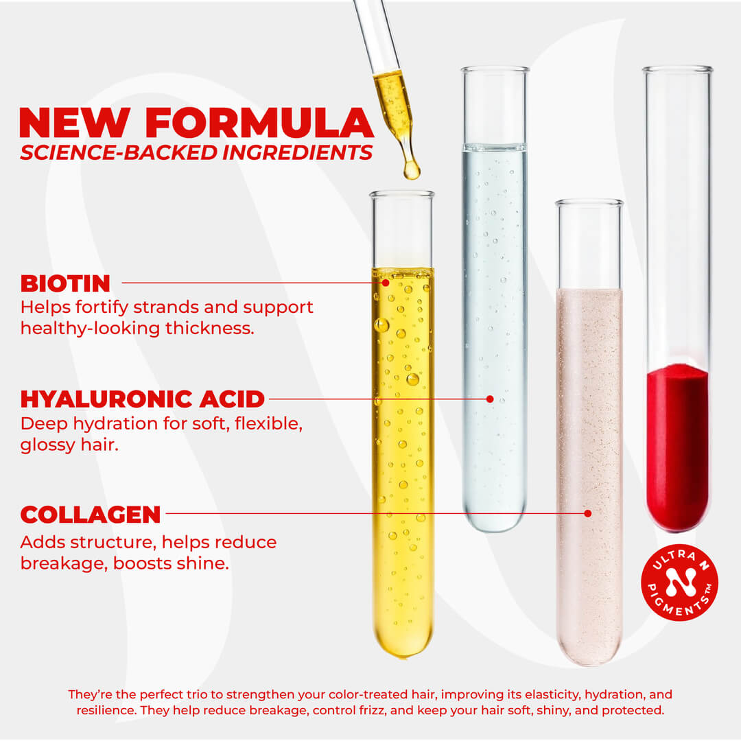 Powered by Naissant Ultra N high-purity red pigments, this shampoo deposits a bright, saturated red with every wash, ideal for reviving faded reds, boosting dull red tones and maintaining bold, high-impact color between salon visits. The result is a richer, more vibrant red that looks fresh and intense instead of washed out.