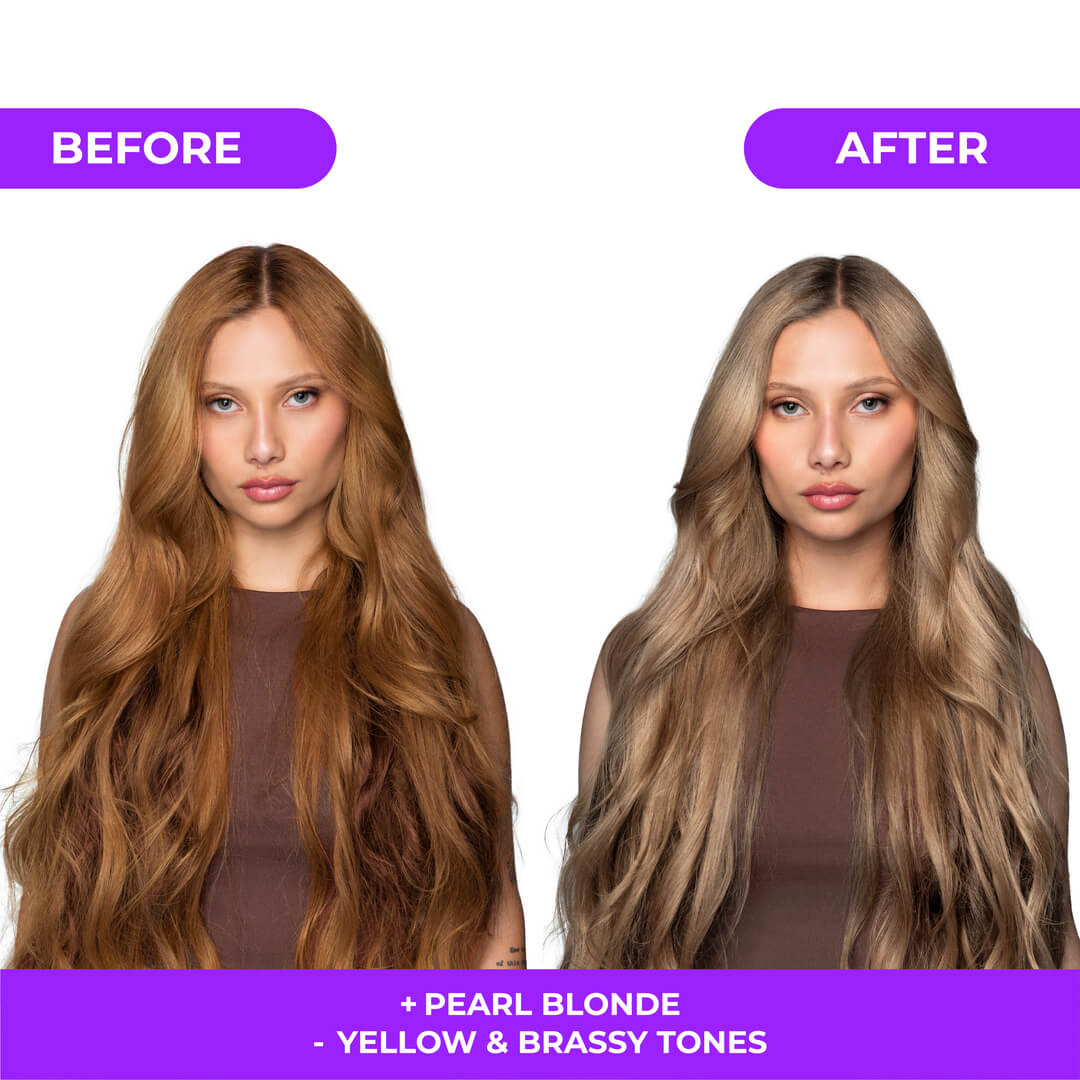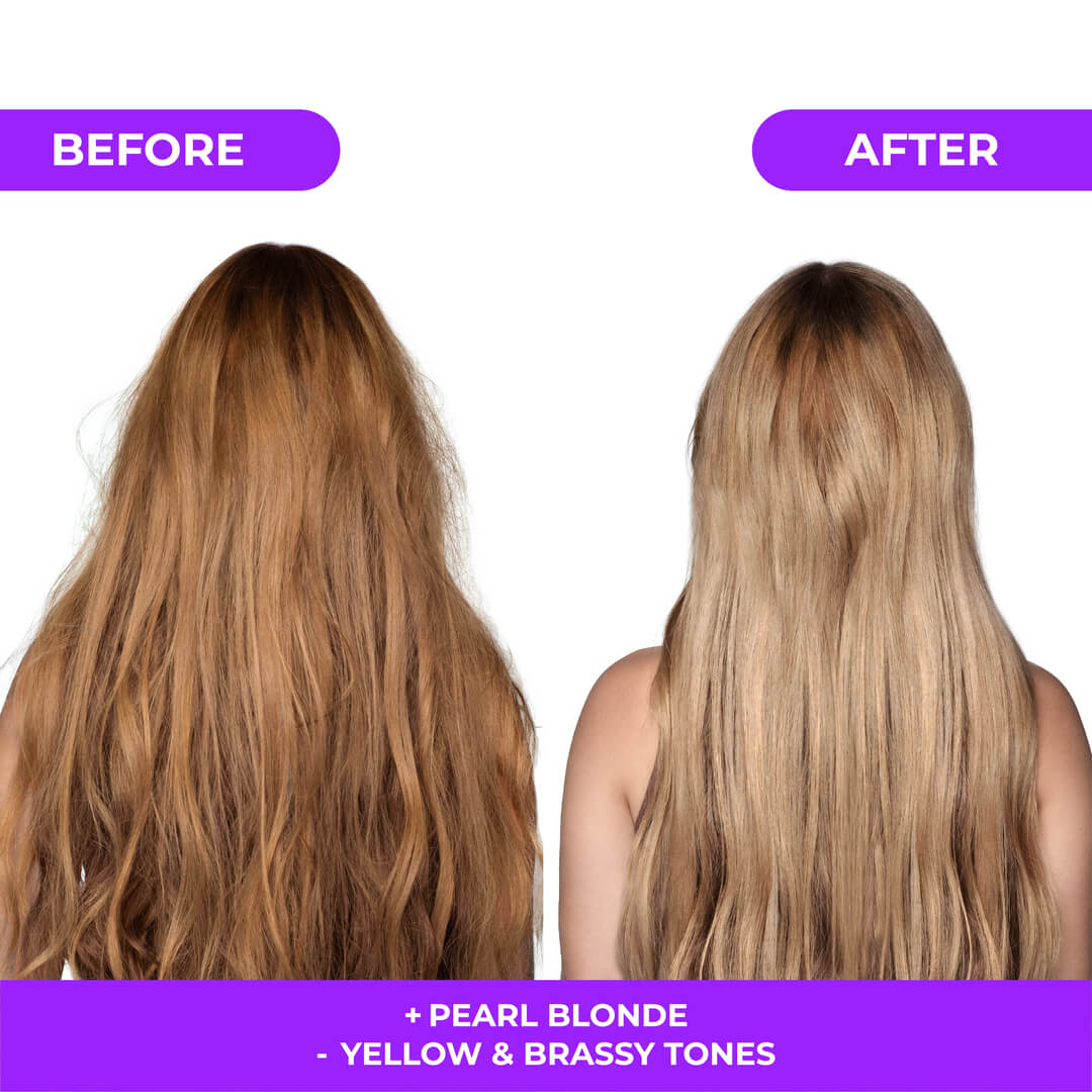 Powered by Naissant Ultra N high-purity violet pigments, this purple shampoo not only prepares the hair fiber but also helps neutralize mild yellow and orange reflections on level 6–8 blondes. The result is a more natural, beige-pearl blonde that looks balanced and less warm—whether used alone or followed by the Naissant Pearl Blonde Hair Toning Mask.